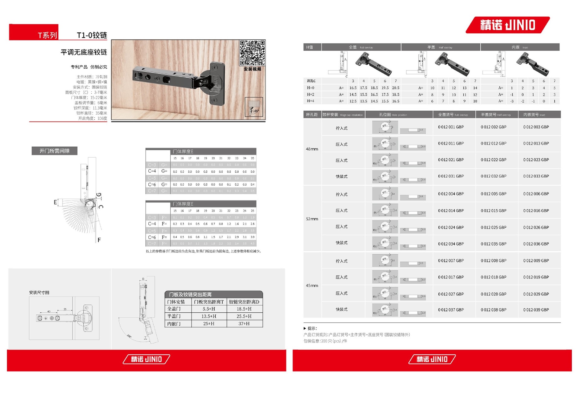 主件材质:冷轧钢 枪色和钛金电镀:黑镍+铜+镍 镍色电镀:铜+镍 安装方式:固装铰链 面板尺寸(C):3-7毫米 门体厚度:15-22毫米 盖板调节量:6毫米 铰杯深度:11.3毫米 铰杯直径:35毫米 开启角度:106度.