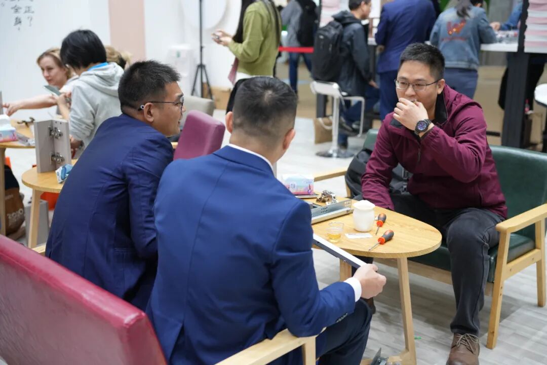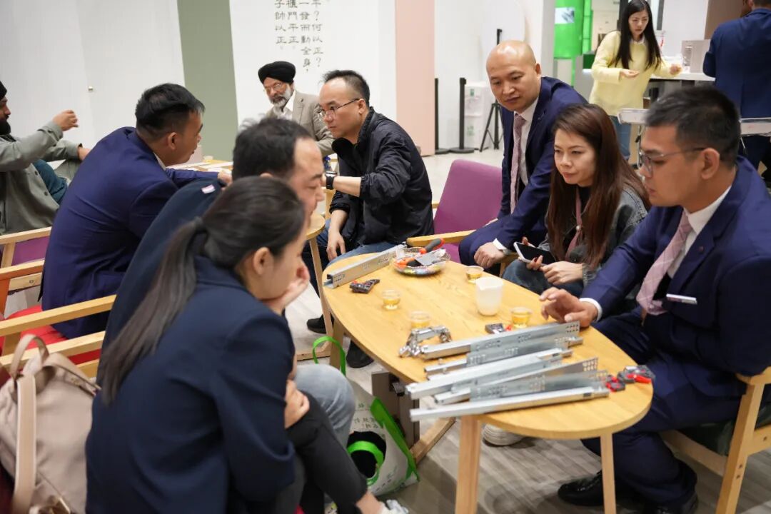 J11B精六四合一凭借其原创的小孔工艺与强力连接设计,吸引了众多家具制造商前来咨询技术细节与应用场景。J8F小洞天则以其小孔设计,加上套筒安装的模式,满足快速拆装,大大提升了效率,还为小型家具及空间利用设计提供了全新思路,深受设计师们青睐。J6-8更是以其高效的套筒安装、可靠的质量和多样化的适配性,满足了不同风格家具的连接需求,成为首日咨询热度极高的产品之一。平调铰链凭借其二段力带小角度缓冲特性,真正做到好装好调;其三轴独立调节功能,可精准匹配各类安装需求,为家具安装与后期调整提供了极大便利,赢得众多专业人士的高度认可。