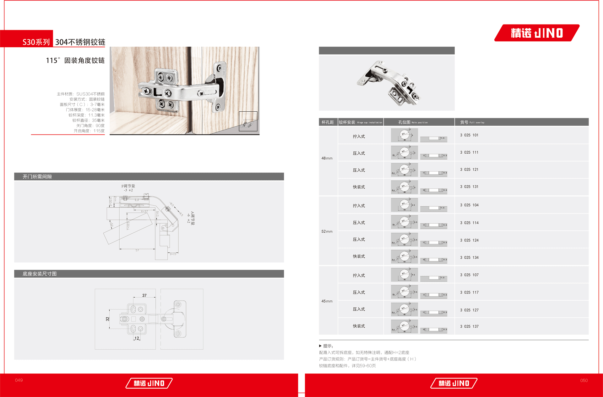 304 115°固装角度铰链