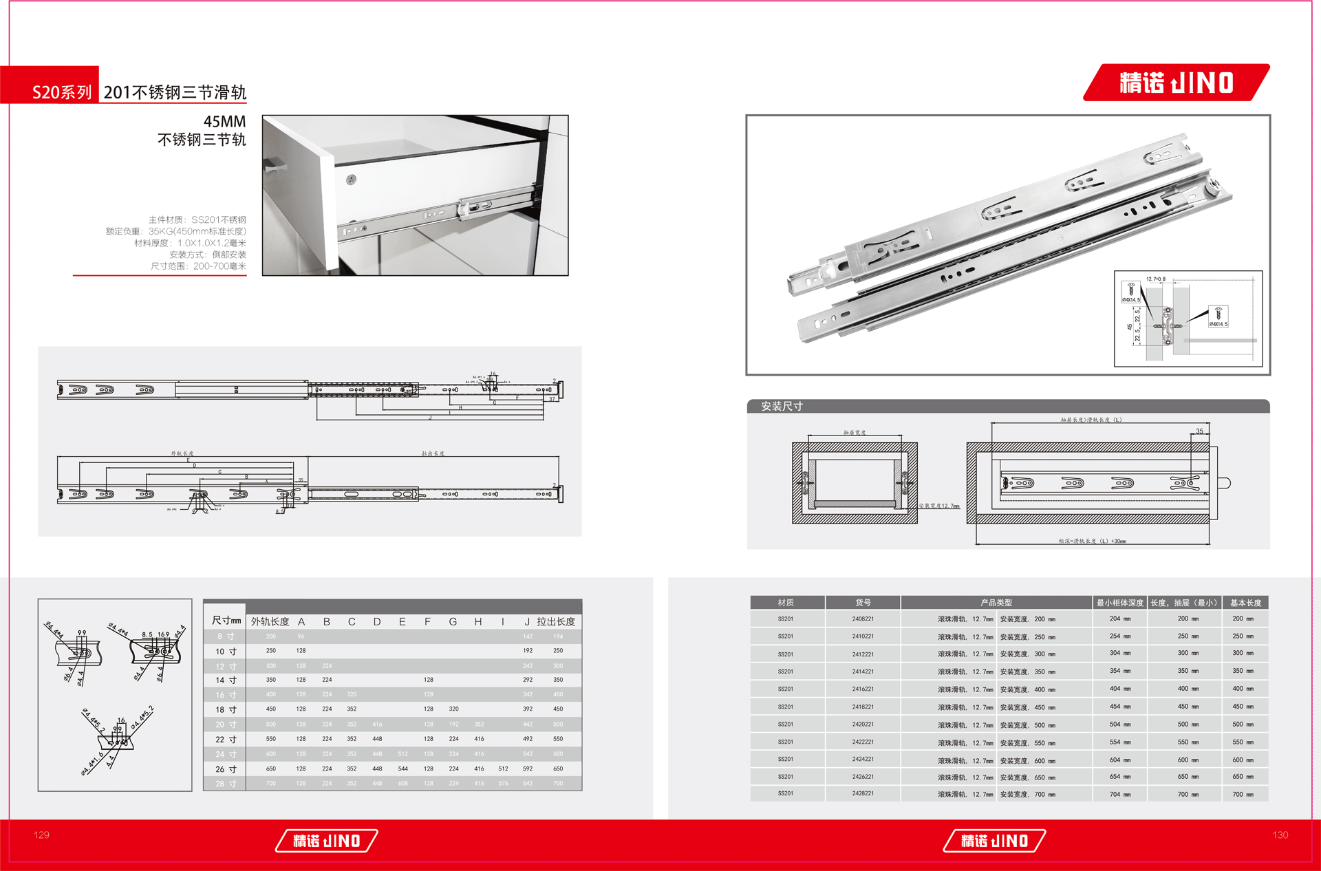 201 45MM 不锈钢三节轨